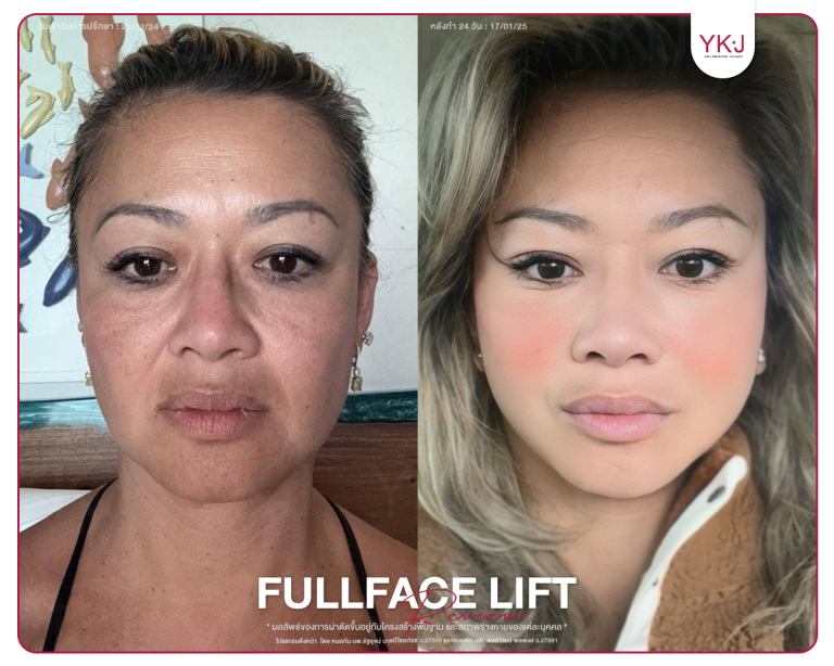 โปรแกรมผ่าตัดดึงหน้า (Facelift) คือ การผ่าตัดศัลยกรรมเพื่อกระชับและตกแต่งกล้ามเนื้อบนผิวหน้าให้กลับมาอยู่ในตําแหน่งที่เหมาะสม ปรับผิวให้ดูเต่งตึง ขจัดปัญหาความหย่อนคล้อย ผิวเหี่ยวย่น รวมถึงปัญหาริ้วรอยร่องลึกบนผิวหน้าให้หายไปอย่างรวดเร็ว ที่ YKJ Medical Clinic เรามีการดึงหน้าเทคนิคขั้นสูง Deep Plane Facelift ซึ่งเป็นการดึงหน้าชั้นลึกกว่า SMAS ให้ผลลัพธ์ที่ดีกว่า และยาวนานกว่า